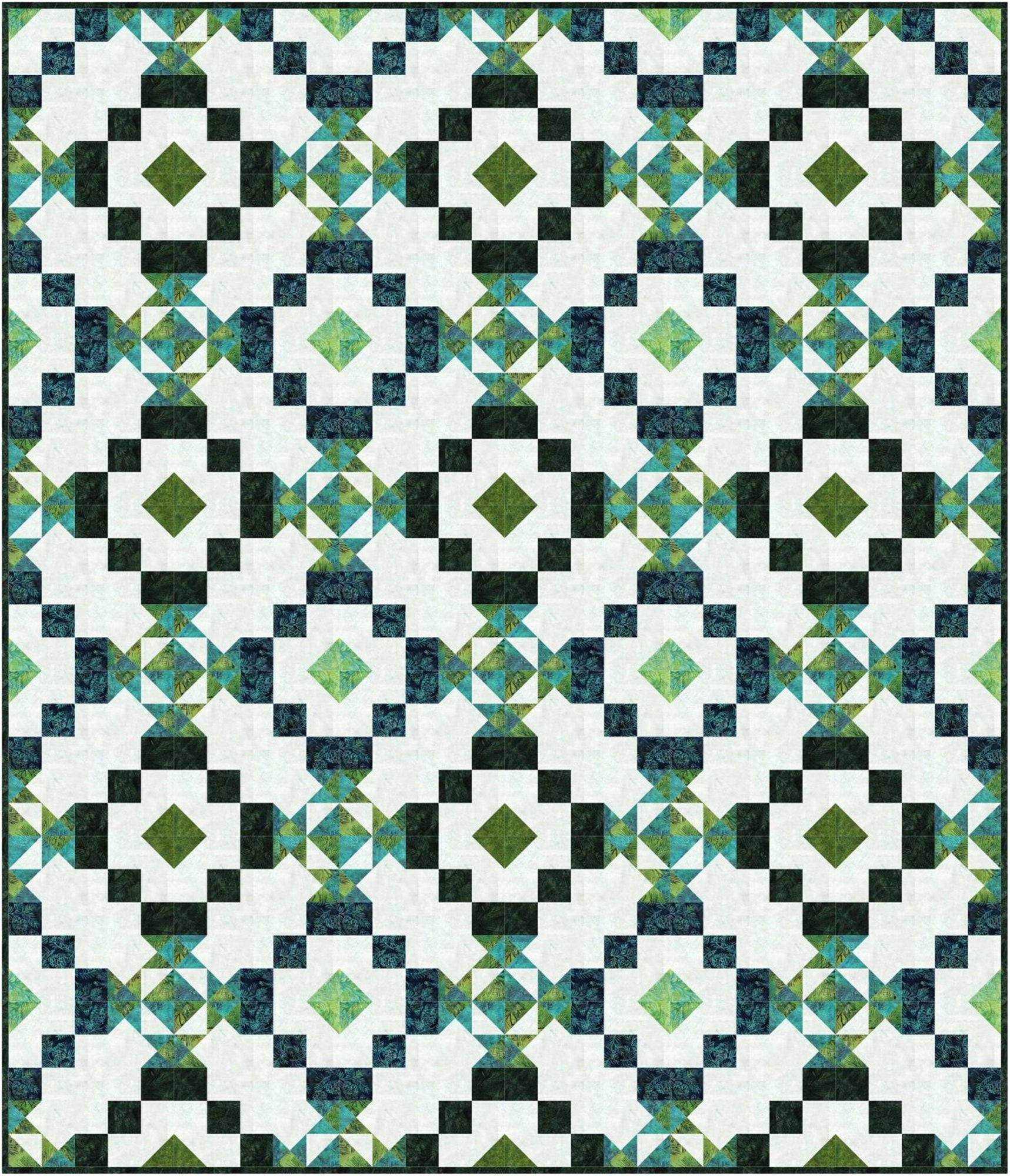 Dive into tranquility with 'Mesmerize,' a captivating quilt design featuring fabrics from 'The Grove' by Raija Salomaa for Island Batiks.