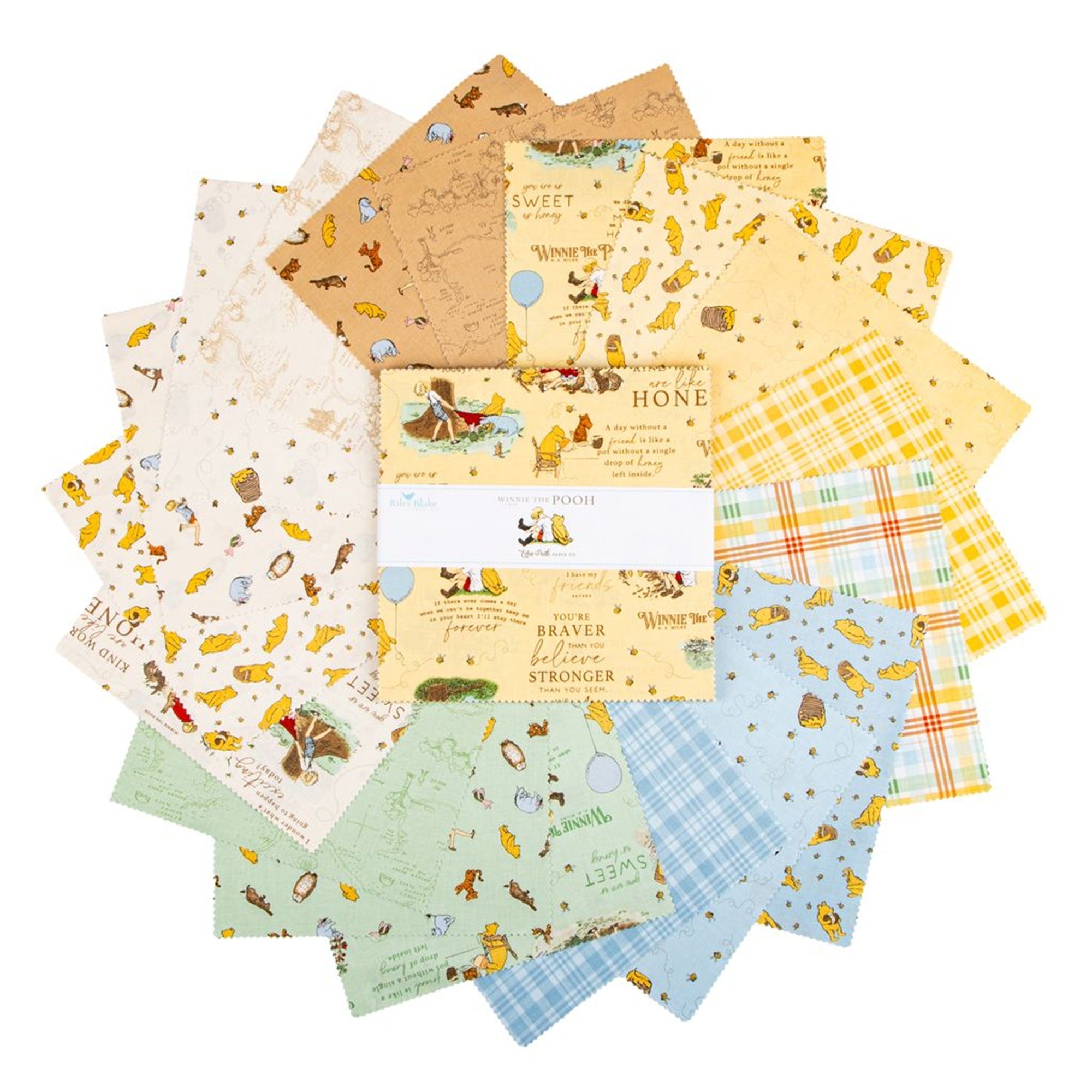 This 10" Stacker precut bundle includes 42 pieces from the Winnie the Pooh collection by Echo Park Paper Co. for Riley Blake Designs. Each print will be included 2-3 times in the bundle.